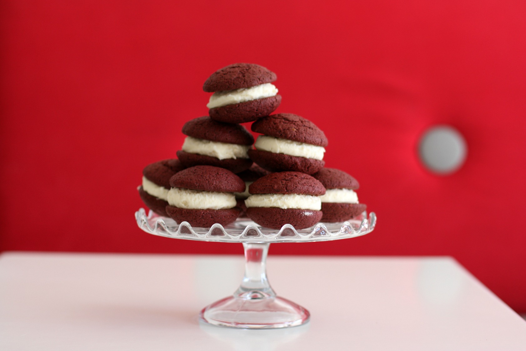 One dozen of our Red Velvet Whoopie Pies, boxed and ready to enjoy! Cream cheese frosting sandwiched between two red velvet cakes. Best when enjoyed within 1-2 days of purchase, refrigeration required.