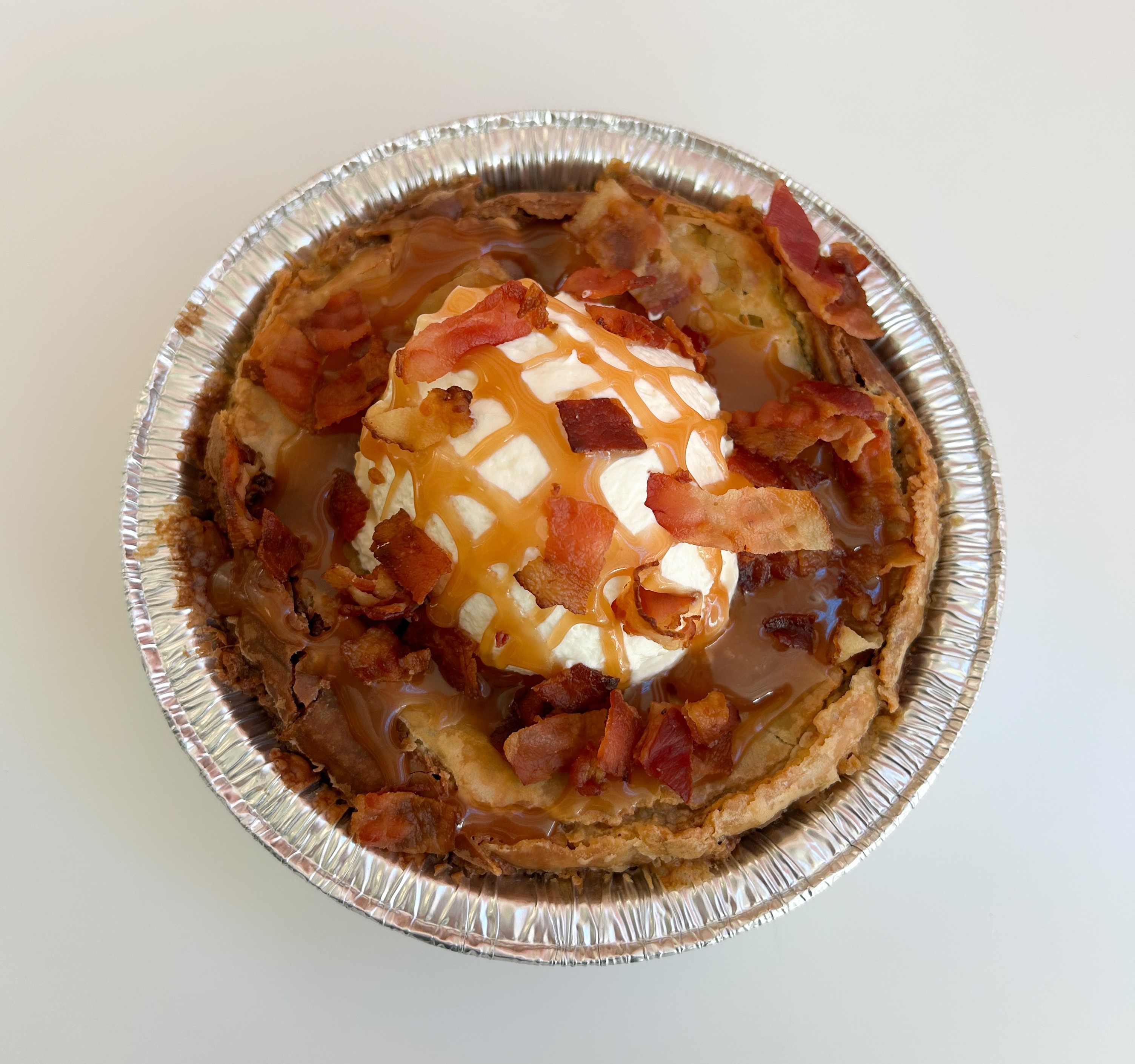We're bringing THE HOT MESS back for Valentine's Day weekend! If you know, you know. The Hot Mess is an ORIGINAL Pie Junkie dessert featuring marbled gooey cake, whipped cream, bacon & salted bourbon caramel. This 6" is perfect for two to share, or to enjoy all by yourself-- we're not judging.