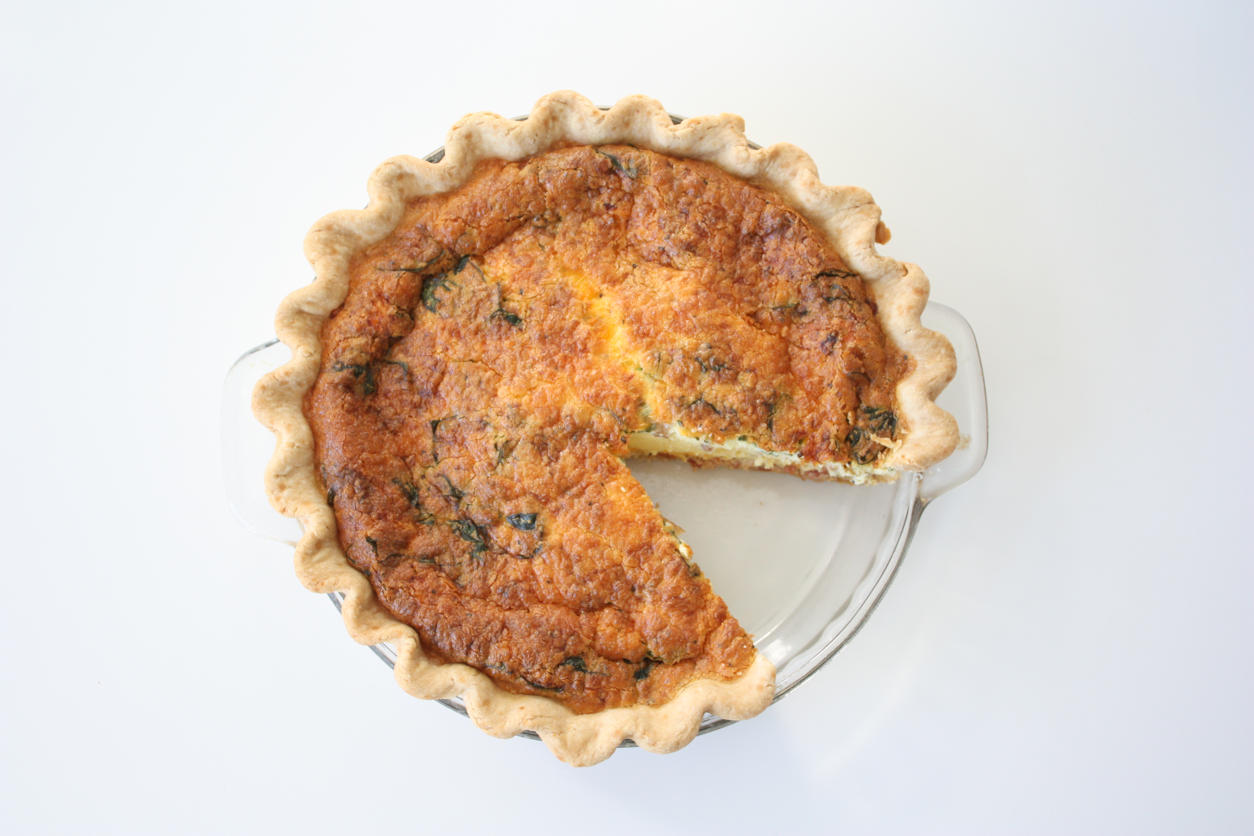 Flaky crust filled with fresh spinach, chopped bacon and gooey cheddar cheese baked up with our creamy egg filling. Freezes well. Whole quiche available by pre-order.