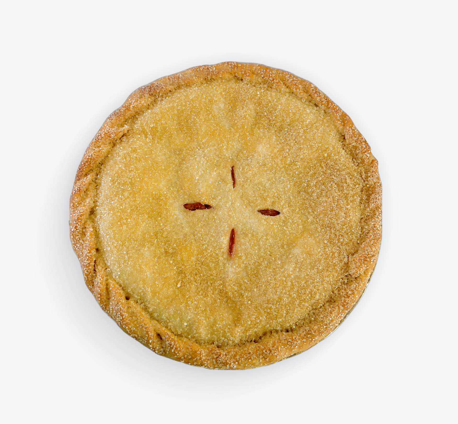 Tart rhubarb and sweet, fresh strawberries are the perfect warm weather combination. Baked in a flaky crust and topped with crunchy raw sugar. Note: our fruit pies are not cooked into a gel filling like you might find in a can! Does not freeze well. Whole Pies available by pre-order in the summertime when ingredients are available.
