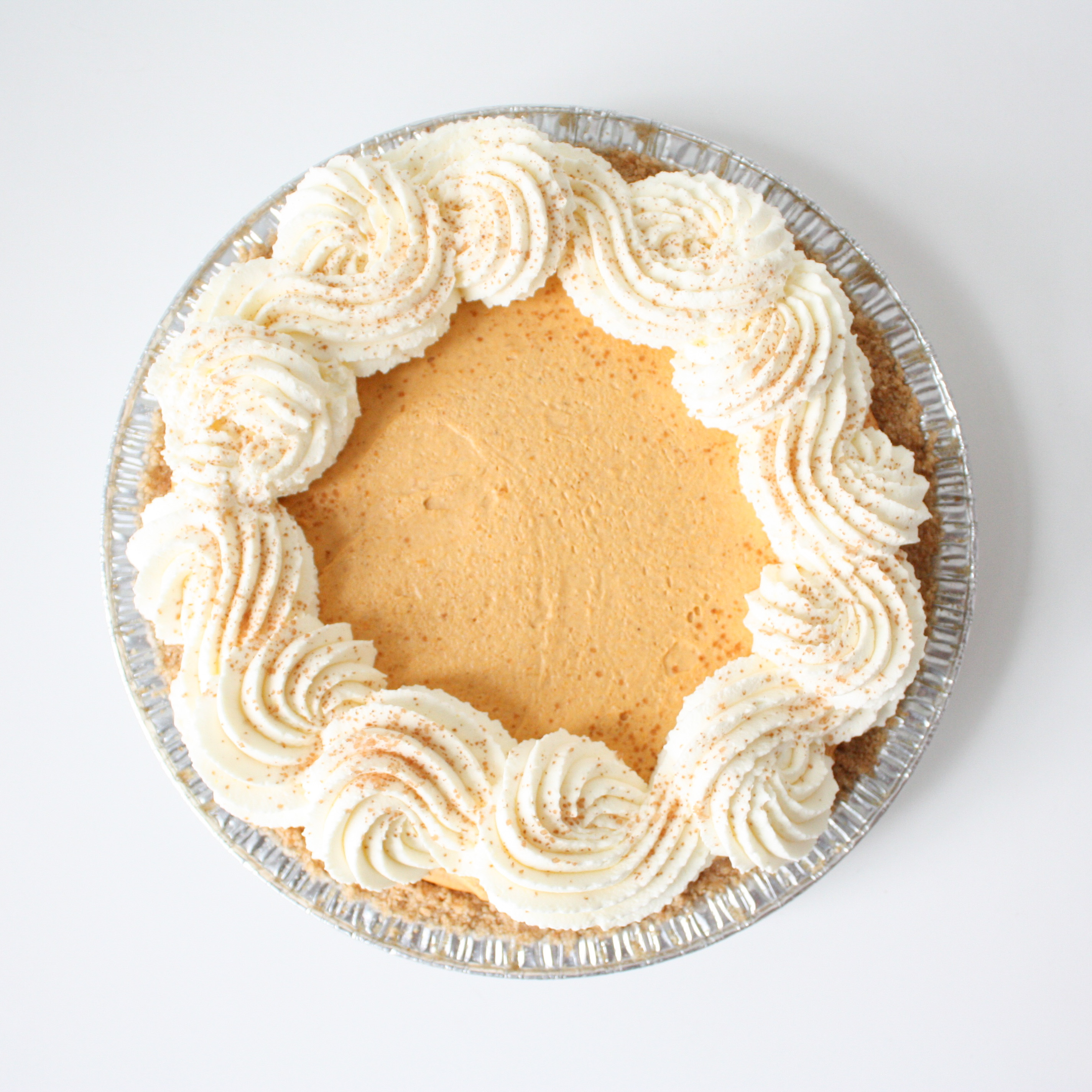 Our buttery graham cracker crust is layered with a creamy spiced pumpkin filling & topped with piped whipped cream & cinnamon sugar. Pumpkin Chiffon will be available by the slice each day in November, until sold out, and whole pies are available by pre-order in November. Best when enjoyed within 2-3 days of preparation. For best quality, we do not recommend freezing this pie.
