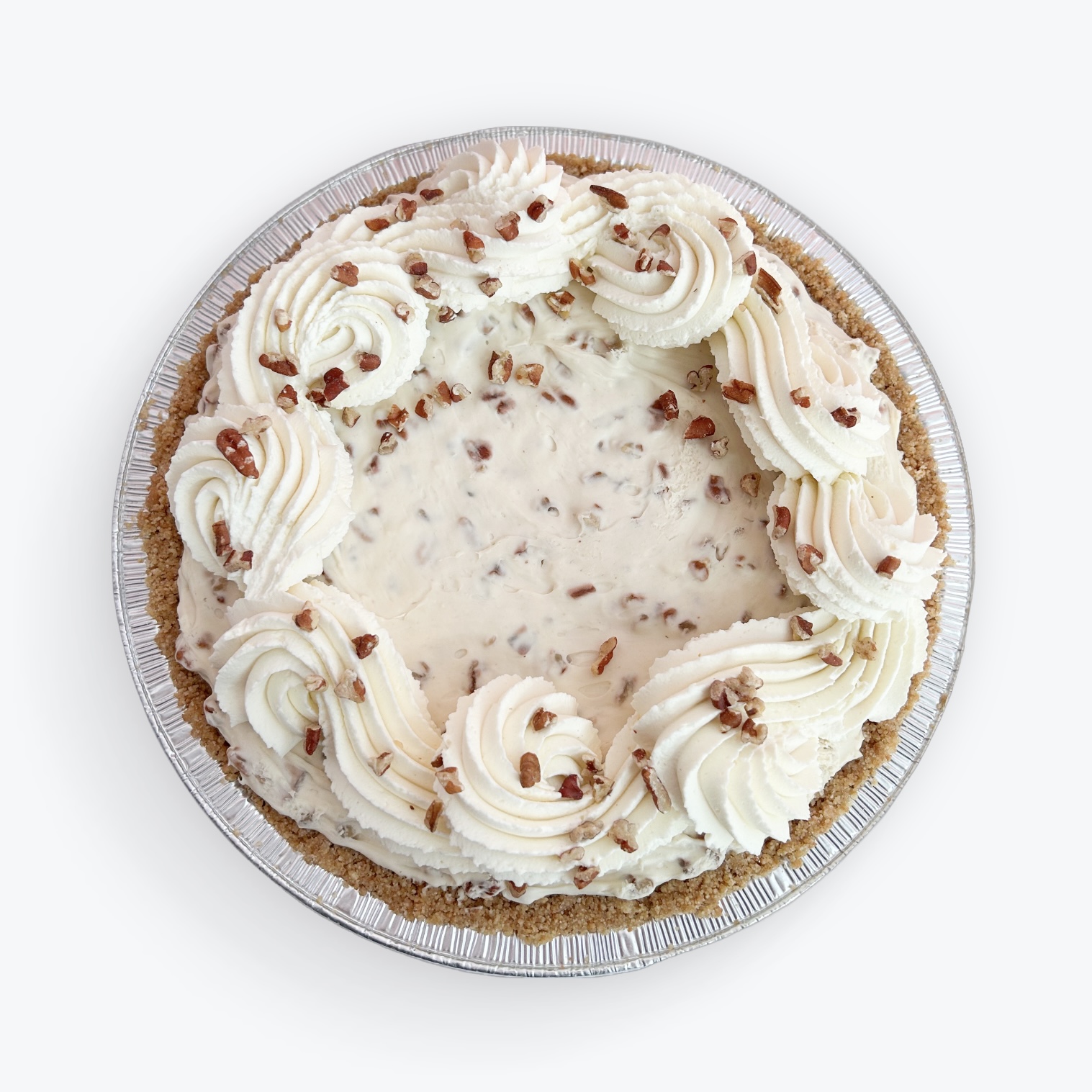 Graham cracker crust filled with a maple cream cheese and toasted pecan filling and maple whipped cream. Best when enjoyed within 2-3 days of preparation. For best quality, we do not recommend freezing this pie. Only available for a limited time!